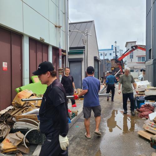 [½Åµ¿¾Æ¹æ¼Û=ÀÌÀçö±âÀÚ] Àü±¹³ëÁ¡»ó´çÁø¿¬ÇÕȸ(ȸÀå ±è±¤¼®, ÀÌÇÏ Àü³ë·Ã)´Â ´çÁø ÀüÅë½ÃÀå ÀÏ´ë ¼öÇØ º¹±¸¸¦ À§ÇØ Áö³­ 17ÀϺÎÅÍ 20ÀϱîÁö 80¿© ¸íÀÇ È¸¿øµé°ú ÇÔ²² º¹±¸ Áö¿ø Ȱµ¿À» ÆîÃÆ´Ù. Àü³ë·ÃÀº ÇÇÇØ ¼Ò½ÄÀ» Á¢ÇÑ Áï½Ã ÀÚ¹ßÀûÀ¸·Î º¹±¸ Áö¿ø¿¡ ³ª¼­¸ç, ħ¼ö¡¦