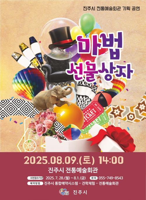 [½Åµ¿¾Æ¹æ¼Û °æ³²ÁøÁÖ=³²±Ã¿µ±â±âÀÚ] ÁøÁֽô 8¿ù 9ÀÏ ¿ÀÈÄ 2½Ã ÆÇ¹®µ¿ ¼ÒÀç ÁøÁֽà ÀüÅ뿹¼úȸ°ü¿¡¼­ ±âȹ°ø¿¬À¸·Î ¾î¸°ÀÌ ¸ÅÁ÷¼îÀÎ ¡®¸¶¹ý¼±¹°»óÀÚ¡¯¸¦ °³ÃÖÇÑ´Ù°í ÀüÇß´Ù. À̹ø °ø¿¬Àº ¸¶¼ú, ¹öºí, ¹ú·é¾ÆÆ®, ±×¸²ÀÚ±Ø, ·¹ÀÌÀú ¼î µî ´Ù¾çÇÑ ÆÛÆ÷¸Õ½º¸¦ ÇϳªÀÇ ÀÌ¡¦