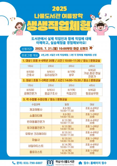 [½Åµ¿¾Æ¹æ¼Û Çϳ²½Ã=À̽ŵ¿±âÀÚ] Çϳ²½Ã´Â ¿À´Â 8¿ù 5ÀϺÎÅÍ 14ÀϱîÁö ³ª·êµµ¼­°ü¿¡¼­ ÃʵîÇлýÀ» ´ë»óÀ¸·Î ¿©¸§¹æÇРƯº° ÇÁ·Î±×·¥ ¡®»ý»ý Á÷¾÷ üÇ衯À» ¿î¿µÇÑ´Ù°í ¹àÇû´Ù. À̹ø ÇÁ·Î±×·¥Àº Àü¹® Á÷¾÷ÀÎÀÌ Á÷Á¢ °­»ç·Î Âü¿©ÇØ Á÷¾÷ ÀÌÇØ °­ÀÇ¿Í ½Ç½ÀÀ» ÇÔ²² ÁøÇàÇÏ¡¦