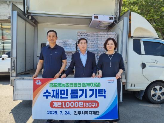[½Åµ¿¾Æ¹æ¼Û °æ³²ÁøÁÖ=³²±Ã¿µ±â±âÀÚ] ±ÝÆ÷¿µ³óÁ¶ÇÕ¹ýÀÎÀº 24ÀÏ ±â·ÏÀûÀÎ Æø¿ì·Î ÇÇÇØ¸¦ ÀÔÀº ÁøÁֽùÎÀ» µ½±â À§ÇØ °è¶õ 1,000ÆÇ(ȯ°¡¾× 700¸¸ ¿ø »ó´ç)À» ÁøÁֽú¹ÁöÀç´Ü¿¡ ±âŹÇß´Ù. À̹ø ±âŹÀº ÃÖ±Ù ÁýÁßÈ£¿ì·Î »ýȰÅÍÀüÀ» ÀҰųª Å« ÇÇÇØ¸¦ ÀÔÀº ¼öÇØ Áֹε鿡°Ô¡¦