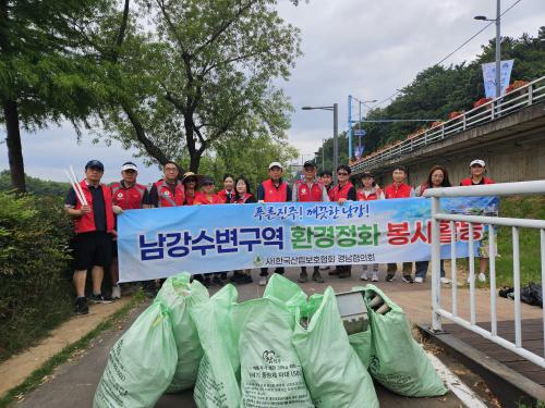 [½Åµ¿¾Æ¹æ¼Û °æ³²ÁøÁÖ=³²±Ã¿µ±â±âÀÚ] (»ç)Çѱ¹»ê¸²º¸È£Çùȸ °æ³²ÇùÀÇȸ´Â 3ÀÏ µ¿¹æÈ£ÅÚ ¾Õ ³²°­ µÐÄ¡ ÀÏ¿ø¿¡¼­ ȯ°æÁ¤È­È°µ¿À» ½Ç½ÃÇß´Ù. À̳¯ Á¤È­È°µ¿Àº 7¿ù ÁýÁßÈ£¿ì·Î ÀÎÇØ ³²°­À¸·Î ¶°³»·Á¿Â ¾²·¹±â¸¦ ¼ö°ÅÇϱâ À§ÇØ ½Ç½ÃÇßÀ¸¸ç, 40¿© ¸íÀÇ È¸¿øµéÀÌ µ¿¹æÈ£ÅÚ ¡¦