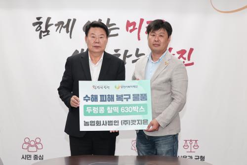 [½Åµ¿¾Æ¹æ¼Û=ÀÌÀçö±âÀÚ] ´çÁø½Ã(½ÃÀå ¿À¼ºÈ¯)´Â 5ÀÏ ³ó¾÷ȸ»ç¹ýÀÎ ¢ß°«ÁöÀº(´ëÇ¥ À̵¿¿ë)ÀÌ ¼öÇØ ÇÇÇØ ´çÁø Áö¿ª ÁֹεéÀ» À§ÇØ µÎ··Äá(¼­¸®ÅÂ) Âû¶± 630¹Ú½º¸¦ ´çÁø½Ã¿¡ ±âŹÇß´Ù°í ¹àÇû´Ù. À̳¯ ±âʽÄÀº ´çÁø½Ãû 7Ãþ Á¢°ß½Ç¿¡¼­ ÁøÇàµÆÀ¸¸ç, À̳¯ À̵¿¿ë ´ëÇ¥°¡¡¦