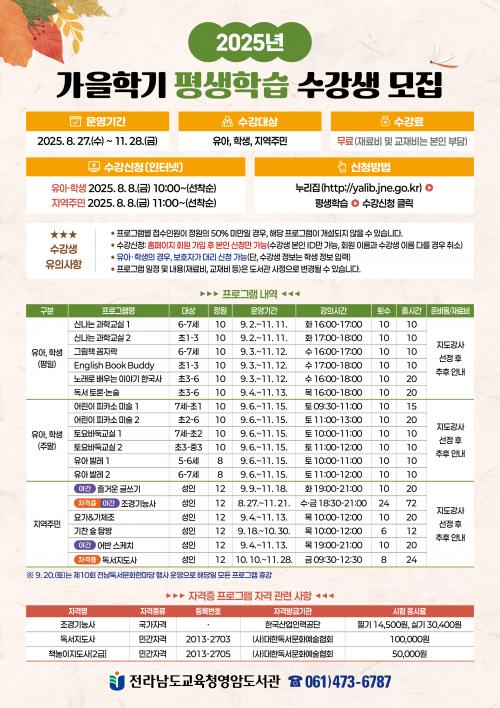 Àü¶ó³²µµ±³À°Ã»¿µ¾Ïµµ¼­°ü, 2025³â °¡À»ÇÐ±â Æò»ýÇнÀÇÁ·Î±×·¥ ¼ö°­»ý ¸ðÁý
