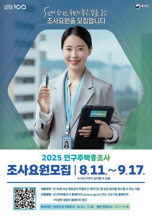 [½Åµ¿¾Æ¹æ¼Û ½ÃÈï½Ã=À̽ŵ¿±âÀÚ] ½ÃÈï½Ã´Â ¿À´Â 10¿ù 22ÀϺÎÅÍ 11¿ù 18ÀϱîÁö ½Ç½ÃµÇ´Â ¡®2025³â Àα¸ÁÖÅÃÃÑÁ¶»ç¡¯ÀÇ ¿øÈ°ÇÑ ÃßÁøÀ» À§ÇØ Á¶»ç¿ä¿ø ÃÑ 273¸íÀ» ¸ðÁýÇÑ´Ù. Åë°èûÀÌ ÁÖ°üÇÏ´Â Àα¸ÁÖÅÃÃÑÁ¶»ç´Â 5³â¸¶´Ù ½Ç½ÃµÇ´Â ±¹°¡ Åë°èÁ¶»ç·Î, ±¹³»¿¡ °ÅÁÖÇÏ´Â ³»¿Ü¡¦