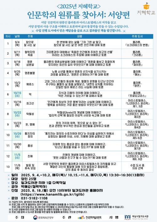 Çϳ²½ÃÀϰ¡µµ¼­°ü, ¡®2025³â ÁöÇýÇб³ Àι®ÇÐÀÇ ¿ø·ù¸¦ ã¾Æ¼­: ¼­¾çÆí¡¯ ¿î¿µ