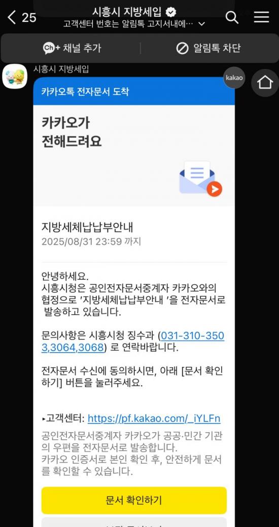 [½Åµ¿¾Æ¹æ¼Û ½ÃÈï½Ã=À̽ŵ¿±âÀÚ] ½ÃÈï½Ã´Â Áö³­ 8¿ù 28ÀÏ ¸ð¹ÙÀÏ(īī¿ÀÅå) ÀüÀÚ¹®¼­ ¹ß¼Û½Ã½ºÅÛÀ» µµÀÔÇϰí, ¾à 2¸¸ °ÇÀÇ Áö¹æ¼¼ ü³³¾È³»¹®À» īī¿ÀÅåÀ¸·Î ¹ß¼ÛÇÏ¸ç ¡®¸ð¹ÙÀÏ Áö¹æ¼¼ÀÔ ÀüÀÚ°íÁö ¼­ºñ½º¡¯ÀÇ º»°Ý ½ÃÇàÀ» ¾Ë·È´Ù. À̹ø ¼­ºñ½º´Â ³³¼¼ÀÚ°¡ º°µµÀÇ ½Å¡¦