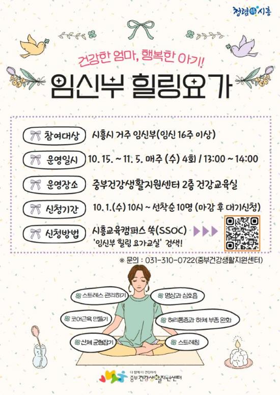 [½Åµ¿¾Æ¹æ¼Û ½ÃÈï½Ã=À̽ŵ¿±âÀÚ] ½ÃÈï½Ãº¸°Ç¼Ò Áߺΰǰ­»ýȰÁö¿ø¼¾ÅÍ´Â ÀӽźÎÀÇ ½ÅüÀû¤ýÁ¤½ÅÀû °Ç°­ ÁõÁøÀ» À§ÇØ ¿À´Â 10¿ù 15ÀϺÎÅÍ 11¿ù 5ÀϱîÁö ¡®ÀӽźΠÈú¸µ ¿ä°¡±³½Ç¡¯À» ¿î¿µÇÑ´Ù. ´ë»óÀº °ü³» ÀӽŠ16ÁÖ ÀÌ»ó ÀӽźηÎ, ¼±Âø¼ø 10¸íÀ» ¸ðÁýÇÑ´Ù. ¿ä°¡ ±³½Ç¡¦
