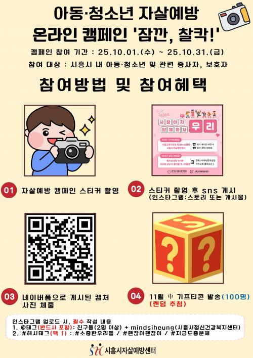 [½Åµ¿¾Æ¹æ¼Û ½ÃÈï½Ã=À̽ŵ¿±âÀÚ] ½ÃÈï½ÃÀڻ쿹¹æ¼¾ÅÍ´Â ¿À´Â 10¿ù 1ÀϺÎÅÍ 31ÀϱîÁö ÇÑ ´Þ°£ ¾Æµ¿¤ýû¼Ò³âÀ» ´ë»óÀ¸·Î »ý¸íÁ¸Áß ÀÎ½Ä È®»ê Ä·ÆäÀÎÀ» ¿î¿µÇÑ´Ù. À̹ø Ä·ÆäÀÎÀº ¾Æµ¿¤ýû¼Ò³âÀÌ ½É¸®Àû ÁöÁö¸¦ ¾ò°í »ý¸íÀÇ ¼ÒÁßÇÔÀ» µÇ»õ±âµµ·Ï µ½´Â ÇÑÆí, À̸¦ ´©¸®¼ÒÅë¸Á¡¦