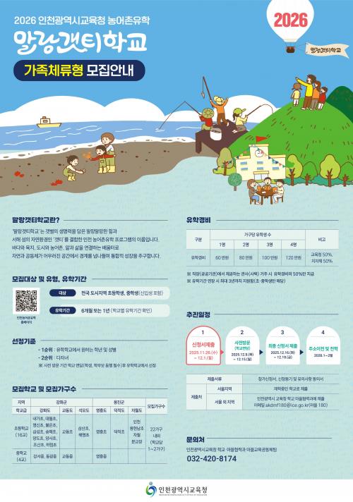 [½Åµ¿¾Æ¹æ¼Û ÀÎõ=À±¹Î½Ä±âÀÚ]ÀÎõ±¤¿ª½Ã±³À°Ã»(±³À°°¨ µµ¼ºÈÆ)Àº 26ÀϺÎÅÍ 12¿ù 1ÀϱîÁö °­È­±º°ú ¿ËÁø±º ³» 20°³ ÃÊ¡¤ÁßÇб³¿¡¼­ 2026Çг⵵ ³ó¾îÃÌÀ¯ÇлýÀ» ¸ðÁýÇÑ´Ù. ÀÎõ½Ã±³À°Ã»Àº 2026³âºÎÅÍ µµ½Ã Çлýµé¿¡°Ô ³ó¾îÃÌ Çб³¿¡¼­ÀÇ Æ¯º°ÇÑ ±³À° °æÇèÀ» Á¦°øÇϴ¡¦