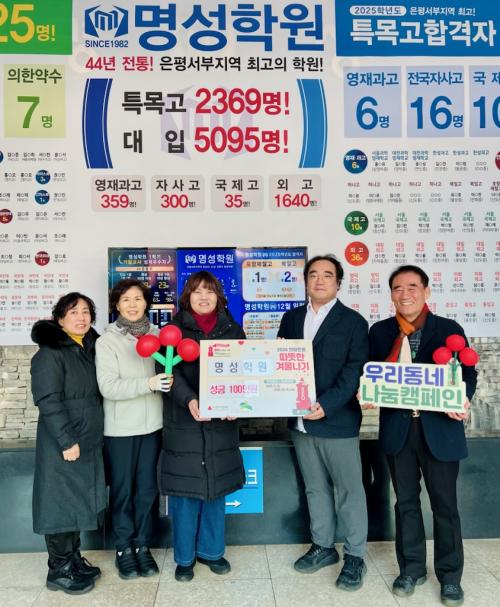 [½Åµ¿¾Æ¹æ¼Û ÀºÆò±¸=À̽ŵ¿±âÀÚ] ¼­¿ï ÀºÆò±¸ ÀÀ¾Ï1µ¿Àº Áö³­ 4ÀÏ ¸í¼ºÇпø¿¡¼­ °Ü¿ïö Ãë¾à°èÃþÀ» µ½±â À§ÇÑ ¡®2026. Èñ¸Á¿Âµ¹ µû¶æÇÑ °Ü¿ï³ª±â¡¯¿¡ ¼º±Ý 1¹é¸¸ ¿øÀ» ±âºÎÇß´Ù°í ¹àÇû´Ù. ¸í¼ºÇпø ÀÌ´öÈñ ÀÌ»çÀåÀº ÀÀ¾Ï1µ¿ Áö¿ª»çȸº¸ÀåÇùÀÇü À§¿øÀ¸·Î Ȱµ¿ÇÏ¸ç ¸Å¡¦