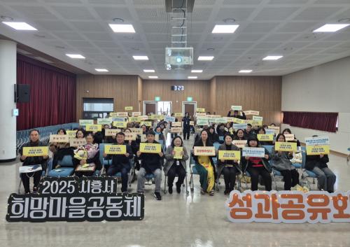 [½Åµ¿¾Æ¹æ¼Û ½ÃÈï½Ã=À̽ŵ¿±âÀÚ] ½ÃÈï½Ã´Â Áö³­ 12¿ù 18ÀÏ Àå°î¾î¿ï¸²¼¾ÅÍ¿¡¼­ ÇÑ ÇØ µ¿¾È ÁֹεéÀÌ ÀÌ¿ô°ú ÇÔ²² ¸¸µé¾î ¿Â Èñ¸Á¸¶À»°øµ¿Ã¼ Ȱµ¿ ¼º°ú¸¦ °øÀ¯Çß´Ù. À̹ø ¼º°ú°øÀ¯È¸´Â Èñ¸Á¸¶À»°øµ¿Ã¼ Ȱµ¿°¡¿Í °ü°èÀÚ µî 80¿© ¸íÀÌ Âü¼®ÇÑ °¡¿îµ¥, ÁֹΠÂü¿©¸¦ ±â¹ÝÀ¸¡¦