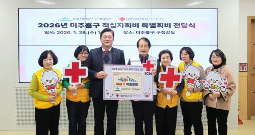 [½Åµ¿¾Æ¹æ¼Û ÀÎõ=À±¹Î½Ä±âÀÚ]ÀÎõ ¹ÌÃßȦ±¸(±¸Ã»Àå ÀÌ¿µÈÆ)´Â 28ÀÏ ±¸Ã»Àå½Ç¿¡¼­ ´ëÇÑÀû½ÊÀÚ»ç ÀÎõÁö»ç(ȸÀå Á¶ÀÇ¿µ)¿Í Àû½ÊÀÚºÀ»çȸ ¹ÌÃßȦ±¸ÇùÀÇȸ(ȸÀå Á¶ÇýÁ¤) µîÀÌ Âü¼®ÇÑ °¡¿îµ¥ Àû½ÊÀÚ Æ¯º°È¸ºñ 200¸¸ ¿øÀ» Àü´ÞÇß´Ù. À̳¯ Àü´ÞµÈ Ưº°È¸ºñ¸¦ Æ÷ÇÔÇÑ Àû½ÊÀÚ¡¦