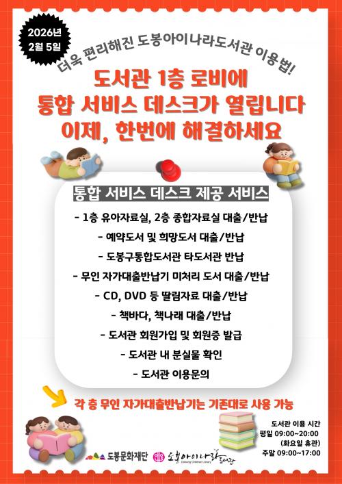 [½Åµ¿¾Æ¹æ¼Û µµºÀ±¸=À̽ŵ¿±âÀÚ] ¼­¿ï µµºÀ±¸ µµºÀ¾ÆÀ̳ª¶óµµ¼­°üÀÌ Áö³­ 2¿ù 5ÀϺÎÅÍ 1Ãþ ·Îºñ¿¡¼­ ÅëÇÕ¼­ºñ½º µ¥½ºÅ© ¿î¿µÀ» ½ÃÀÛÇß´Ù. 1Ãþ À¯¾ÆÀÚ·á½Ç, 2Ãþ Á¾ÇÕÀÚ·á½Ç µî °¢ ÀÚ·á½Ç¿¡¼­¸¸ °¡´ÉÇß´ø µµ¼­ ´ëÃâ°ú ¹Ý³³ÀÌ ÀÌÁ¦ 1Ãþ ·Îºñ¿¡¼­µµ °¡´ÉÇÏ´Ù. ¶Ç µµºÀ¡¦
