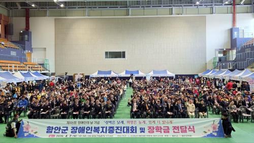 [½Åµ¿¾Ð¾Æ¼Û °æ³²ÇÔ¾È=À̽ŵ¿±âÀÚ] ÇԾȱºÀº Áö³­ 2ÀÏ ÇÔ¾ÈüÀ°°ü¿¡¼­ Á¦46ȸ Àå¾ÖÀÎÀÇ ³¯À» ¸Â¾Æ Àå¾ÖÀκ¹ÁöÁõÁø´ëȸ¿Í ÀåÇÐ±Ý Àü´Þ½ÄÀ» °¡Á³´Ù°í ¹àÇû´Ù. À̳¯ Çà»ç¿¡´Â ¼®¿íÈñ ºÎ±º¼ö¸¦ ºñ·ÔÇØ Àå¾ÖÀΰú °¡Á·, ºÀ»çÀÚ µî ¾à 1000¿© ¸íÀÌ Âü¼®ÇØ ¶æ±íÀº ½Ã°£À» °¡¡¦