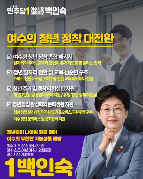 [½Åµ¿¾Æ¹æ¼ÛÀü³²¿©¼ö=±è±â³² ±âÀÚ] ¹éÀμ÷ ´õºÒ¾î¹ÎÁÖ´ç ¿©¼ö½ÃÀå ¿¹ºñÈ帴 "û³âÀÌ ºüÁ®³ª°¡¸é ¿©¼öÀÇ ¹Ì·¡µµ ÇÔ²² ºüÁ®³ª°£´Ù"¸ç ÁÖ°Å¡¤ÀÏÀÚ¸®¡¤Ã¢¾÷¡¤Á¤Âø¡¤¹®È­¸¦ ¹­Àº 5´ë û³âÁ¤Ã¥À» ¹ßÇ¥Çß´Ù. ¹é ¿¹ºñÈ帴 "ÃÖ±Ù 20³â°£ ¿©¼öÀÇ 20~34¼¼ û³â ¼øÀ¯ÃâÀÌ ¡¦