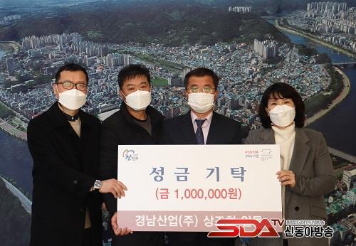 [½Åµ¿¾Æ¹æ¼Û´º½º=Á¤ÁöÀ± ±âÀÚ] °æ³²»ê¾÷(ÁÖ)(´ëÇ¥ Á¶Çö¼Û) ¹× Á÷¿ø »óÁ¶È¸(ȸÀå ÃÖÁ¤³²)´Â Áö³ 8ÀÏ ¼º±Ý 100¸¸¿øÀ» ÁøÁֽú¹ÁöÀç´Ü(ÀÌ»çÀå À̼º°©)¿¡ Àü´ÞÇß½À´Ï´Ù.