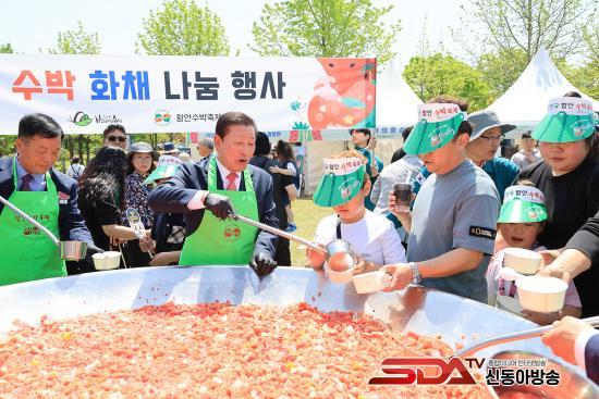 Çà»ç ù³¯ ¿ÀÈÄ 5½Ã¿¡´Â ÇÔ¾ÈüÀ°°ü¿¡¼­ ¡®Çâ¿ì ¸¸³²ÀÇ À塯ÀÌ ¿­¸®¸ç ¿ÀÈÄ 6½ÃºÎÅÍ °ø¼³¿îµ¿Àå ³» Ư¼³¹«´ë¿¡¼­ ÃàÁ¦ °³¸·À» ÃàÇÏÇÏ´Â °ø¿¬ÀÌ ÆîÃÄÁ® ÈïÀ» µ¸¿ï ¿¹Á¤ÀÌ´Ù. °³¸·½ÄÀº ¿ÀÈÄ 6½Ã 30ºÐ ±º¹ÎÇåÀå ³¶µ¶°ú ±º¹Î»ó ½Ã»ó¿¡ ÀÌ¾î ¿ÀÈÄ 7½ÃºÎÅÍ ¡®Á¦16ȸ ÇÔ¾Èó³à¹î»ç°ø Àü±¹°¡¿äÁ¦¡¯°¡ ¿­¸°´Ù.