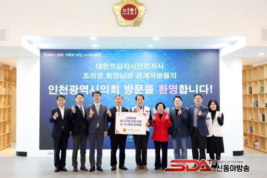 ÀÎõ½ÃÀÇȸ(ÀÇÀå Á¤ÇرÇ)´Â 18ÀÏ ÀÇȸ Á¢°ß½Ç¿¡¼ Á¤ÇØ±Ç ÀÇÀåÀ» ºñ·ÔÇØ À̼±¿Á․ÀÌ¿À»ó Á¦1․2ºÎÀÇÀå, ÀÓÃá¿ø ÀÇȸ¿î¿µÀ§¿øÀå, ±è´ëÁß °Ç¼³±³ÅëÀ§¿øÀå, ±è´ë¿µ ÀÇ¿ø, ¹ÚÂùÈÆ »ç¹«Ã³Àå, ´ëÇÑÀû½ÊÀÚ»ç ÀÎõÁö»ç Á¶ÀÇ¿µ ȸÀå µîÀÌ Âü¼®ÇÑ °¡¿îµ¥ °æ»óµµ Áö¿ª »êºÒ ÇÇÇØ º¹±¸ Áö¿ø ¼º±Ý 1õ¸¸ ¿øÀ» ´ëÇÑÀû½ÊÀÚ»ç ÀÎõÁö»ç¿¡ Àü´ÞÇß´Ù.