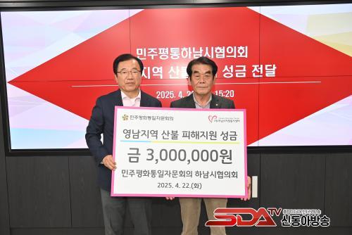[½Åµ¿¾Æ¹æ¼Û Çϳ²½Ã=À̽ŵ¿±âÀÚ] ¹ÎÁÖÆòÈ­ÅëÀÏÀÚ¹®È¸ÀÇ Çϳ²½ÃÇùÀÇȸ´Â 22ÀÏ Çϳ²½ÃÀå½ÇÀ» ¹æ¹®ÇÏ¿© ¿µ³²Áö¿ª »êºÒ ÇÇÇØ ÀÌÀç¹ÎµéÀ» À§ÇØ ¼º±Ý »ï¹é¸¸¿øÀ» Àü´ÞÇß´Ù.