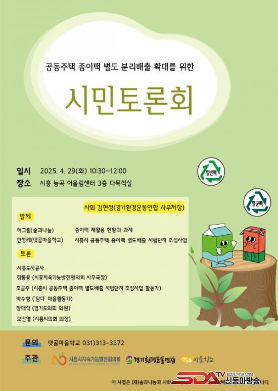 À̹ø Åä·Ðȸ´Â (Àç)½£°ú³ª´®ÀÌ ÁÖÃÖÇÏ¸ç ½ÃÈï½ÃÁö¼Ó°¡´É¹ßÀüÇùÀÇȸ, ´ñ°ñ¸¶À»Çб³, °æ±âȯ°æ¿îµ¿¿¬ÇÕÀÌ °øµ¿ ÁÖ°üÇÑ´Ù. ±âÈÄ À§±â ´ëÀÀ°ú ź¼ÒÁ߸³ ½ÇÇöÀ» À§ÇÑ ½Ã¹Î Âü¿© ½Çõ ¹æ¾ÈÀ» ¸ð»öÇϰí, Á¾ÀÌÆÑ ÀçȰ¿ëÀÇ Çʿ伺°ú ÇöȲÀ» °øÀ¯ÇÏ´Â ÀÚ¸®·Î ¸¶·ÃµÆ´Ù. ƯÈ÷ ½ÃÈï½ÃÀÇ ½Ã¹ü ¿î¿µ »ç·Ê¸¦ ¹ÙÅÁÀ¸·Î Á¦µµ °³¼± ¹× È®»ê ¹æ¾È µî °øµ¿ÁÖÅÿ¡¼ÀÇ ¿Ã¹Ù¸¥ ºÐ¸®¹èÃâ ¹®È Á¤ÂøÀ» À§ÇÑ Á¤Ã¥ ¹æÇâÀ» ÇÔ²² ³íÀÇÇÒ ¿¹Á¤ÀÌ´Ù.