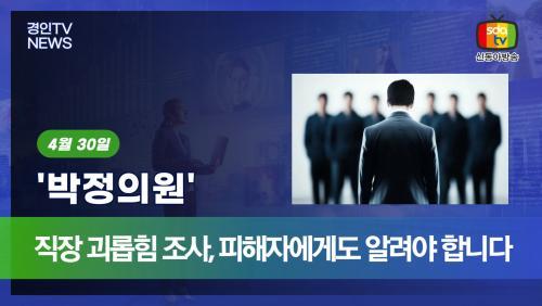 30ÀÏ, ¹ÚÁ¤ ±¹È¸ÀÇ¿ø(ÆÄÁÖ½ÃÀ»)Àº »ç¿ëÀÚ°¡ Á÷Àå ³» ±«·ÓÈû »ç½ÇÀ» ÀÎÁöÇϰųª ½Å°í¸¦ ¹ÞÀº °æ¿ì, ÇÇÇØÀÚ¿¡°Ô Á¶»ç ÁøÇà ÀýÂ÷¿Í °á°ú¸¦ ¹Ýµå½Ã ¾Ë¸®µµ·Ï ÇÏ´Â '±Ù·Î±âÁعý ÀϺΰ³Á¤¹ý·ü¾È'À» ´ëÇ¥ ¹ßÀÇÇß´Ù°í ¹àÇû´Ù.