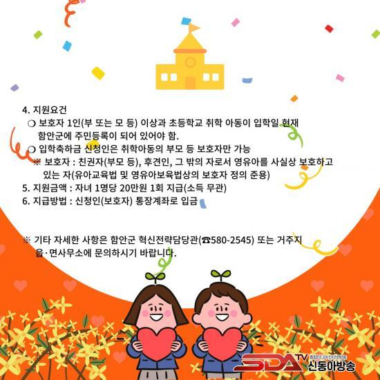 ±×µ¿¾È µÑ° ÀÚ³à ÀÌ»ó¿¡ ÇÑÇØ Áö±ÞÇÏ´ø ÃʵîÇб³ ÀÔÇÐÃàÇϱÝÀ» ¿ÃÇØºÎÅÍ ¸ðµç ÃÊµî ½ÅÀÔ»ý °¡Á¤À¸·Î È®´ëÇÑ´Ù. Áö¿ø ´ë»óÀº º¸È£ÀÚ¿Í ÀÚ³à ¸ðµÎ°¡ ÀÔÇÐÀÏ ±âÁØÀ¸·Î ÇԾȱº¿¡ Áֹεî·ÏÀÌ µÇ¾î ÀÖ¾î¾ß Çϸç, ¼Òµæ ¼öÁذú °ü°è¾øÀÌ µ¿ÀÏÇÏ°Ô ¾Æµ¿ 1Àδç 20¸¸ ¿øÀÇ Çö±ÝÀÌ Áö±ÞµÇ¸ç ½ÅûÀº º¸È£ÀÚ(ºÎ¸ð, Ä£±ÇÀÚ, ÈİßÀÎ µî)¸¸ °¡´ÉÇÏ´Ù.