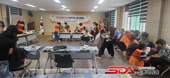 À̹ø ºÀ»çȰµ¿Àº ȸ¿ø 20¿© ¸íÀÌ Âü¼®ÇÏ¿© ¿ÀÀü9½ÃºÎÅÍ ¿ÀÈÄ 3½Ã±îÁö ¹Ìõ¸é ¾î¸£½Å 50¿© ¸í¿¡°Ô ÆÄ¸¶¿Í ĿƮ, ¿°»ö ÀÌ¡¤¹Ì¿ë¼ºñ½º, ¼Õ ¸¶»çÁö, Á¦»§±â´É»ç¹Ý(¹Ú¹ÌÀÚ °»ç) ¼ö°»ýµéÀÌ ¸¸µç »§ 2Á¾À» °£½ÄÀ¸·Î Á¦°øÇÏ¿´´Ù.