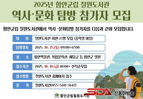 À̹ø ޹æÀº 10¿ù 25ÀÏ Åä¿äÀÏ ¿ÀÀü 10½Ã Ä¥¿øµµ¼°ü¿¡¼ Ãâ¹ßÇϸç, ¿¹´ã°í, ÇԾȺ¹ÇÕ¹®Çаü, ÇԾȹڹ°°ü, ¸»ÀÌ»ê°íºÐ±º µî ÇÔ¾È Áö¿ªÀÇ ´ëÇ¥ÀûÀÎ ¿ª»ç¡¤¹®È °ø°£À» ¹æ¹®ÇÒ °èȹÀÌ´Ù. ¶ÇÇÑ ´Ü¼øÇÑ ¹®ÈÀ¯»ê °ü¶÷À» ³Ñ¾î, Âü°¡ÀÚµéÀÌ ¿ª»ç¿Í ¹®È¸¦ Á÷Á¢ üÇèÇÒ ¼ö ÀÖµµ·Ï ÀüÅëÀå ¸¸µé±â üÇè Ȱµ¿µµ Æ÷ÇԵȴÙ.