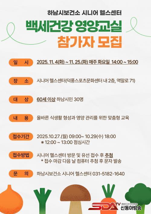 [½Åµ¿¾Æ¹æ¼Û Çϳ²½Ã=À̽ŵ¿±âÀÚ] Çϳ²½Ã´Â 10¿ù 27ÀϺÎÅÍ 29ÀϱîÁö Áö¿ª ³» 60¼¼ ÀÌ»ó ½Ã¹ÎÀ» ´ë»óÀ¸·Î °Ç°­ÇÑ ½Ä½À°ü Çü¼º°ú ¸¸¼ºÁúȯ ¿¹¹æÀ» µ½±â À§ÇÑ ¡®¹é¼¼°Ç°­ ¿µ¾ç±³½Ç¡¯ Âü°¡ÀÚ¸¦ ¸ðÁýÇÑ´Ù.