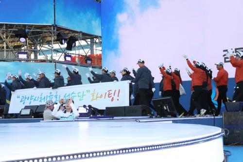 ¶Ç ±¤¾ç½ÃüÀ°È¸ ÀÓÁ÷¿ø 101¸íÀÌ °æ±âÀåÀ» ã¾Æ ¼±¼ö´ÜÀ» °Ý·ÁÇϰí ÀÀ¿øÇÑ °á°ú, Àü¶ó³²µµÃ¼À°È¸·ÎºÎÅÍ ¡®ÈÇÕ»ó¡¯À» ¼ö»óÇß´Ù.
