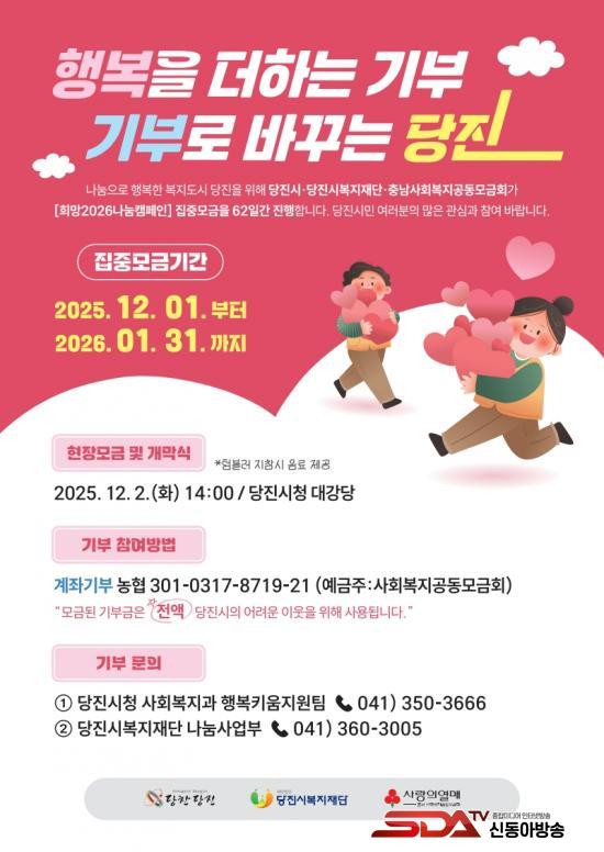 ±âºÎ¸¦ Èñ¸ÁÇÏ´Â °³ÀΡ¤´Üü¡¤±â¾÷Àº ½Ãû »çȸº¹Áö°ú ÇູŰ¿òÁö¿øÆÀ(¢Ï 041-350-3660, 3666), ´çÁø½Ãº¹ÁöÀç´Ü(¢Ï 041-360-3005), À¾¸éµ¿ ÇàÁ¤º¹Áö¼¾Å͸¦ ÅëÇØ ±âŹÇϰųª, °øµ¿¸ð±Ý Á¢¼ö°èÁÂ(³óÇùÀºÇà 301-0317-8719-21, »çȸº¹Áö°øµ¿¸ð±Ýȸ)¿¡ ÀÔ±ÝÇÏ¸é µÈ´Ù.
