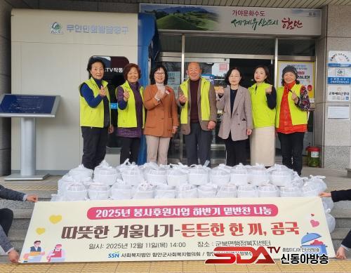 À̳¯ Çà»ç¸¦ À§ÇØ °æ³²¿©¼º¸®´õºÀ»ç´Ü(ȸÀå À̱ÝÀÚ)Àº Á¤¼º½º·´°Ô °õ±¹À» ²úÀ̰í, Á¦Ã¶ ¹«·Î ½Ã¿øÇÑ ±ïµÎ±â¸¦ ´ã°¬´Ù. ÁغñµÈ °õ±¹°ú ±ïµÎ±â´Â ÇԾȱºÃ»ÀÇ ÇùÁ¶¸¦ ¹Þ¾Æ Àú¼Òµæ ¼Ò¿Ü°èÃþ 100°¡±¸¿¡ µû¶æÇÑ ¸¶À½°ú ÇÔ²² Àü´ÞµÉ ¿¹Á¤ÀÌ´Ù.