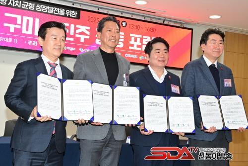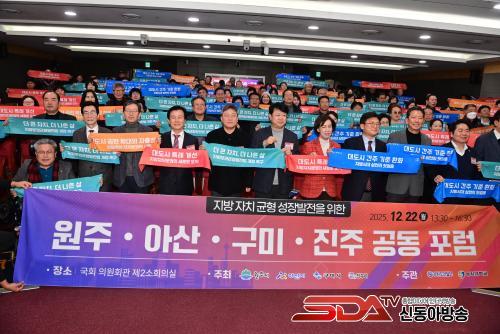 ƯÈ÷ À̳¯ Æ÷·³¿¡¼­´Â ÁøÁÖ¡¤¿øÁÖ¡¤¾Æ»ê¡¤±¸¹Ì½Ã µî 4°³ã¼ ½ÃÀåÀÌ °øµ¿¼±¾ð¹®¿¡ ¼­¸íÇϰí, Àα¸ 30¸¸ ¸í¡¤¸éÀû 500§´ ÀÌ»óÀÇ Áö¹æÀÚÄ¡´Üü¿¡ ´ëµµ½Ã Ư·Ê¸¦ ºÎ¿©ÇÒ ¼ö ÀÖµµ·Ï ¡ã¡¸Áö¹æÀÚÄ¡ºÐ±Ç ¹× Áö¿ª±ÕÇü¹ßÀü¿¡ °üÇÑ Æ¯º°¹ý¡¹ ÀϺΰ³Á¤¾ÈÀÇ Á¶¼ÓÇÑ Åë°ú ¡ãÁö¹æ °ÅÁ¡µµ½ÃÀÇ ÀÚÀ²Àû ¼ºÀå ¿©°ÇÀ» µÞ¹ÞħÇÒ Á¦µµÀû ±â¹Ý ¸¶·Ã ¡ã½ÇÁúÀûÀÎ ±ÇÇÑ À̾ç°ú ¹Ì·¡ ¼ºÀå µ¿·Â Áö¿øÀ» Á¤ºÎ¿Í ±¹È¸¿¡ °øµ¿À¸·Î °ÇÀÇÇß´Ù.