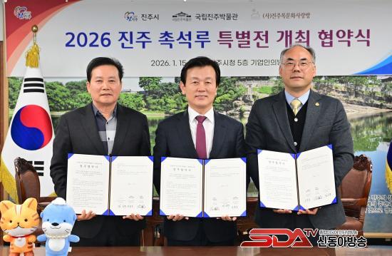 ÁøÁֽô 15ÀÏ ½Ãû 5Ãþ ±â¾÷ÀÎÀÇ ¹æ¿¡¼ ¡®±¹¸³ÁøÁÖ¹Ú¹°°ü¡¯, ¡®(»ç)ÁøÁÖ¸ñ¹®È»ç¶û¹æ¡¯°ú ¡¸2026 ÁøÁÖ Ã˼®·ç Ưº°Àü¡¹ÀÇ °³ÃÖ¸¦ À§ÇÑ ¾÷¹«Çù¾à(MOU)À» ü°áÇß´Ù°í ¹àÇû´Ù.
