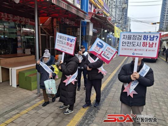 10ÀÏ ¿ÀÈÄ Çϳ²½Ã ¹× Çϳ²¼Ò¹æ¼­¡¤Çϳ²½ÃÀÇ¿ë¼Ò¹æ´ë°¡ ´ödzÀüÅë½ÃÀå¿¡¼­ ½Ã¹ÎµéÀÇ ¾ÈÀüÀÇ½Ä Á¦°í¸¦ À§ÇÑ ¾ÈÀüÄ·ÆäÀÎÀ» ±â³äÇÏ¿© »çÁøÀ» Âï°í ÀÖ´Ù
