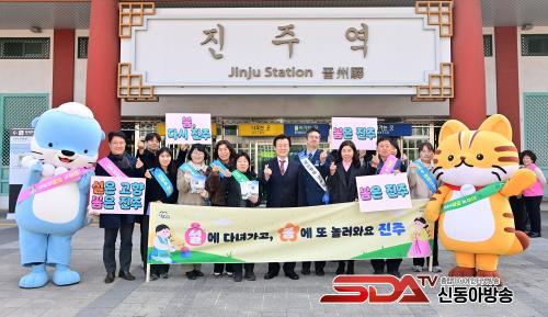 [½Åµ¿¾Æ¹æ¼Û °æ³²ÁøÁÖ=±è¸í¼ö±âÀÚ] ÁøÁֽô 13ÀÏ ¼³ ¸íÀýÀ» ¸Â¾Æ ±Í¼º°´°ú °ü±¤°´¿¡°Ô µû¶æÇÑ È¯¿µ Àλ縦 ÀüÇϰí, º½Ã¶ °ü±¤ ½ÃÁðÀ» ¾ÕµÎ°í ÁøÁÖÀÇ ÁÖ¿ä °ü±¤ ÀÚ¿øÀ» ¾Ë¸®±â À§ÇØ ÁøÁÖ¿ª ÀÏ¿ø¿¡¼ ¡®¼³ ¸íÀý °ü±¤ È«º¸ Ä·ÆäÀΡ¯À» ½Ç½ÃÇß´Ù.