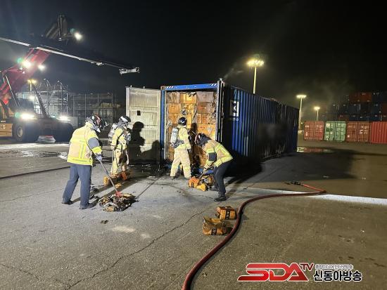 ½¡ÀÌ ÀûÀçµÈ ÄÁÅ×À̳ʿ¡ 1°³¿¡¼ ÀÚ¿¬¹ßÈ·Î ¿¬±â°¡ ÇǾî¿Ã¶úÀ¸³ª Å« ÈÀç°¡ ¹ß»ýÇÏÁø ¾Ê¾ÒÀ¸¸ç, ¿©¼öÇØ°æÀº °Å¹®µµ ÀÎ±Ù ÇØ»ó¿¡¼ºÎÅÍ °æºñÇÔÁ¤À» µ¿¿øÇØ ±¤¾çÇ× ÄÁÅ×À̳ʺεαîÁö ¾ÈÀü°ü¸®¸¦ ½Ç½ÃÇß´Ù.