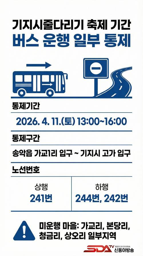 À̹ø ÅëÁ¦´Â 4¿ù 11ÀÏ ¿ÀÈÄ 1½ÃºÎÅÍ 4½Ã±îÁö 3½Ã°£ µ¿¾È ¼Û¾ÇÀ¾ °¡±³1¸® ÀÔ±¸~±âÁö½Ã °í°¡ ÀÔ±¸ ±¸°£¿¡¼ ½Ç½ÃÇÑ´Ù. ÇØ´ç ½Ã°£ µ¿¾È ½Ã³»¹ö½º »óÇà 241¹ø, ÇÏÇà 244¹ø, 242¹ø ³ë¼±Àº ÇØ´ç ±¸°£À» ¿ìȸ ¿îÇàÇÑ´Ù.