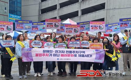 [½Åµ¿¾Æ¹æ¼Û´º½º=ÃÖ¼ÛÈ­±âÀÚ] ±èÇØ½Ã ÀåÀ¯ÃâÀå¼Ò(¼ÒÀå ÇÑÈçÈñ)´Â Áö³­ 6ÀÏ ¿ÀÀÏÀåÀÌ ¿­¸° Á©¹Ì½ÃÀå ÀÏ¿ø¿¡¼­ ±èÇØ½Ã±âÈÄ․ȯ°æ³×Æ®¿öÅ© ȸ¿ø 20¿©¸í°ú ÇÔ²² ¡®Àå¾ÖÀÎ・Àü±âÂ÷ Àü¿ëÁÖÂ÷±¸¿ª ºÒ¹ýÁÖÁ¤Â÷ ±ÙÀý¡¯À» À§ÇÑ ¹Î°ü ÇÕµ¿ Ä·ÆäÀÎÀ» ½Ç½ÃÇß´Ù°í 7ÀÏ ¹àÇû´Ù.