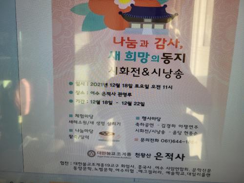 [½Åµ¿¾Æ¹æ¼Û=±è±â³² ±âÀÚ] õ³â°íÂû ¿©¼ö µ¹»ê ÀºÀû»ç(ÁÖÁö ´ã¿¬ ½º´Ô)°¡ Äڷγª19·Î ÁöÄ£ ½Ã¹ÎµéÀ» À§·ÎÇϱâ À§ÇØ »õ Èñ¸ÁÀÇ µ¿Áö ÆÏÁ× ³ª´® Çà»ç¸¦ ÇÑ´Ù. ¿À´Â 18ÀÏ ¿ÀÀü 11½Ã ÀºÀû»ç °ü¸í·ç¿¡¼­ ¿­¸®´Â ¡®»õ Èñ¸ÁÀÇ µ¿Áö ÆÏÁ× ³ª´®¡¯ Çà»ç´Â ±è°æÇÏ ¾ÆÀ↓ÁÖ¿Í¡¦