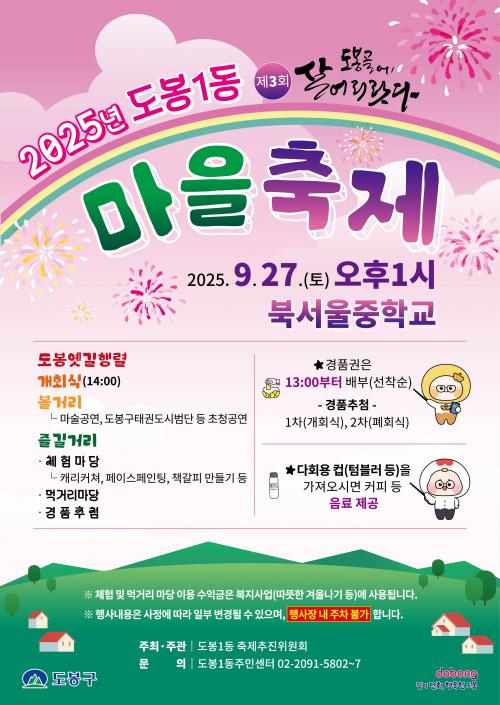 [½Åµ¿¾Æ¹æ¼Û µµºÀ±¸=À̽ŵ¿±âÀÚ] ¼­¿ï µµºÀ±¸ µµºÀ1µ¿ÀÌ ¿À´Â 9¿ù 27ÀÏ ¿ÀÈÄ 1½Ã ºÏ¼­¿ïÁßÇб³¿¡¼­ µµºÀ1µ¿ ¸¶À»ÃàÁ¦ ¡®Á¦3ȸ µµºÀ°ñ¿¡ »ì¾î¸®¶ù´Ù¡¯¸¦ °³ÃÖÇÑ´Ù. µµºÀ1µ¿ ÃàÁ¦ÃßÁøÀ§¿øÈ¸°¡ ÁÖÃÖÇÏ´Â À̹ø ÃàÁ¦´Â ÀüÅë°ú Çö´ë¸¦ ¾Æ¿ì¸£´Â ´Ùä·Î¿î ÇÁ·Î±×·¥À¸·Î ²Ù¸ç¡¦