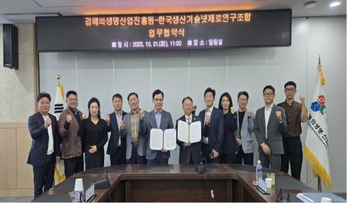[½Åµ¿¾Æ¹æ¼Û °æ³²±èÇØ=³²±Ã¿µ±â±âÀÚ] ±èÇØÀÇ»ý¸í¡¤»ê¾÷ÁøÈï¿ø°ú (»ç)Çѱ¹»ý»ê±â¼ú³ÝÁ¦·Î¿¬±¸Á¶ÇÕ´Â Áö³­ 21ÀÏ ±èÇØÁß¼Ò±â¾÷ºñÁî´Ï½º¼¾ÅÍ 4Ãþ ÀÓ¿ø½Ç¿¡¼­ ¡°Áß¼Ò¡¤Áß°ß Á¦Á¶¾÷ ź¼ÒÁ߸³ ´ëÀÀÀ» À§ÇÑ ¾÷¹«Çù¾à¡±À» ü°áÇÏ¿´´Ù. À̳¯ Çù¾à½ÄÀº ¾ç ±â°üÀÌ º¸À¯ÇÑ ÀÚ¿ø°ú¡¦