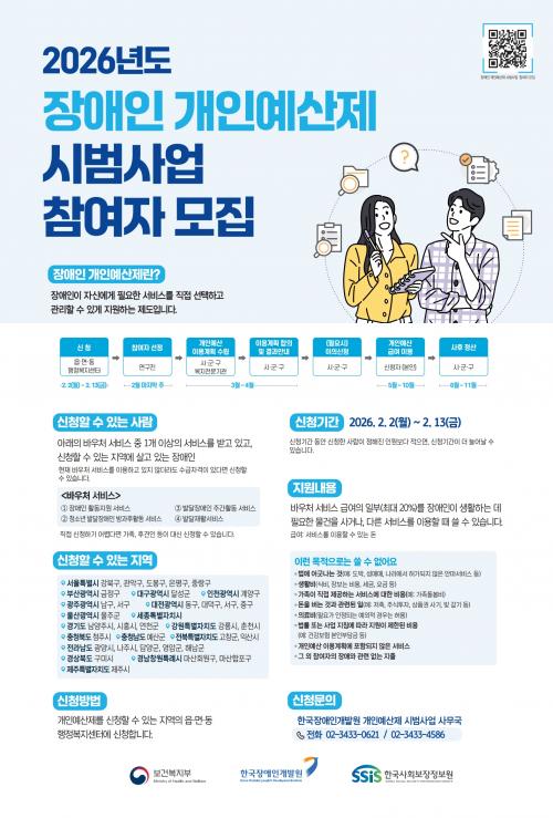2026³â Àå¾ÖÀÎ °³ÀÎ ¿¹»êÁ¦ ½Ã¹ü»ç¾÷ Âü¿©ÀÚ ¸ðÁý