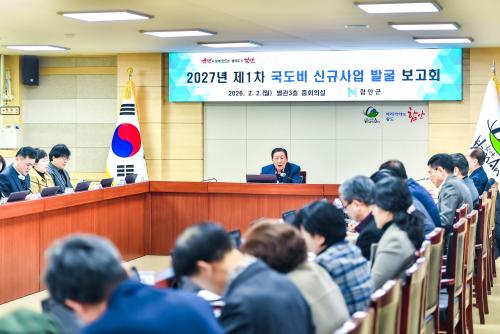 [½Åµ¿¾Æ¹æ¼Û °æ³²ÇÔ¾È=À̽ŵ¿±âÀÚ] ÇԾȱºÀº Áö³­ 2ÀÏ ±ºÃ» º°°ü 3Ãþ ȸÀǽǿ¡¼­ 2027³âµµ ±¹µµºñ ¿¹»ê È®º¸¸¦ À§ÇÑ ½Å±Ô »ç¾÷ 1Â÷ ¹ß±¼ º¸°íȸ¸¦ ¿­°í, Áö¿ª ¼ºÀå µ¿·ÂÀÌ µÉ Àü·« »ç¾÷ÀÇ ±¹µµºñ È®º¸¿¡ º»°ÝÀûÀ¸·Î ´ëÀÀÇϱâ·Î Çß´Ù°í ¹àÇû´Ù. À̳¯ º¸°íȸ¿¡´Â Á¶±Ù¡¦