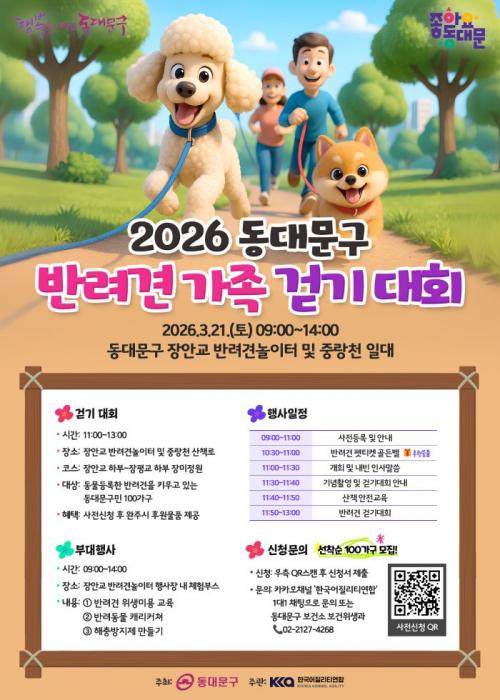 [½Åµ¿¾Æ¹æ¼Û µ¿´ë¹®±¸=À̽ŵ¿±âÀÚ] ¼­¿ï µ¿´ë¹®±¸´Â ¿À´Â 21ÀÏ Áß¶ûõ Àå¾È±³ ÇϺΠ¹Ý·Á°ß ³îÀÌÅÍ¿Í »êÃ¥·Î ÀÏ´ë¿¡¼­ ¡®2026 µ¿´ë¹®±¸ ¹Ý·Á°ß °¡Á· °È±â´ëȸ¡¯¸¦ ¿¬´Ù°í ¹àÇû´Ù. ¹Ý·Á°ß°ú º¸È£ÀÚ°¡ ÇÔ²² °È°í ¹è¿ì¸ç, ÀÌ¿ô°ú ÀÚ¿¬½º·´°Ô ¾î¿ï¸®´Â ÀÚ¸®¸¦ ¸¸µé¾î ¼º¼÷¡¦